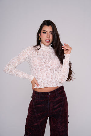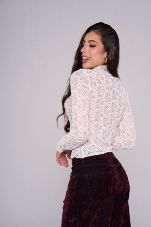 BLUSA EN TRANSPARENCIA CON ENCAJE