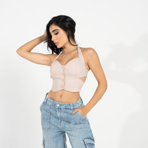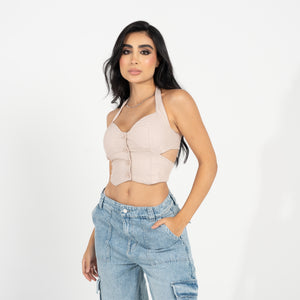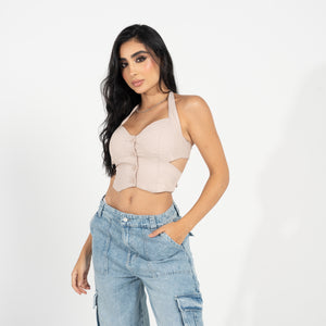CHALECO CON BOTONES Y AMARRE EN EL CUELLO