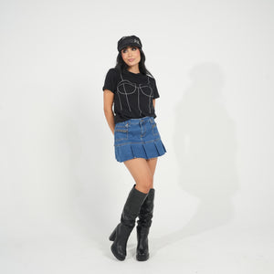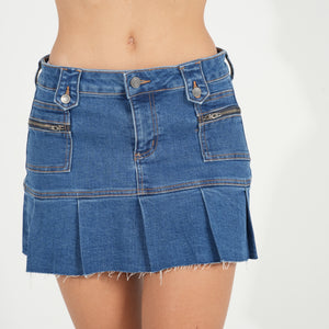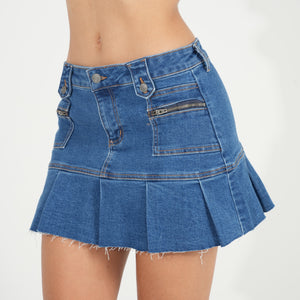 FALDA CORTA CON BOLSILLOS DELANTEROS Y PRENSES