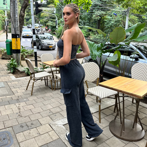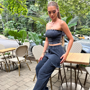 SET STRAPLESS CON PANTAON TIPO CARGO