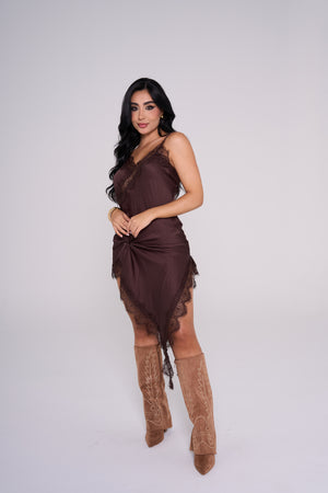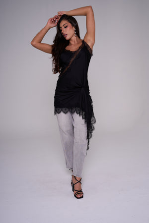VESTIDO ASIMÉTRICO CON ENCAJE